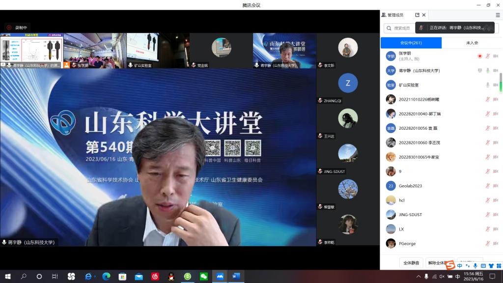 6月16日,第540期山东科学大讲堂在伟德bv国际体育院士大讲堂开讲。本次活动由省科协、省教育厅、省科技厅、省卫生健康委主办,伟德bv国际体育矿山灾害预防控制伟德bv国际体育承办,邀请日本工程院外籍院士蒋宇静教授作“深海甲烷水合物(可燃冰)开采中的地层环境力学问题与研究动态”主题报告。本次讲堂由伟德bv国际体育能源与矿业工程学院院长陈绍杰教授主持,活动采取线上线下相结合的方式举行。